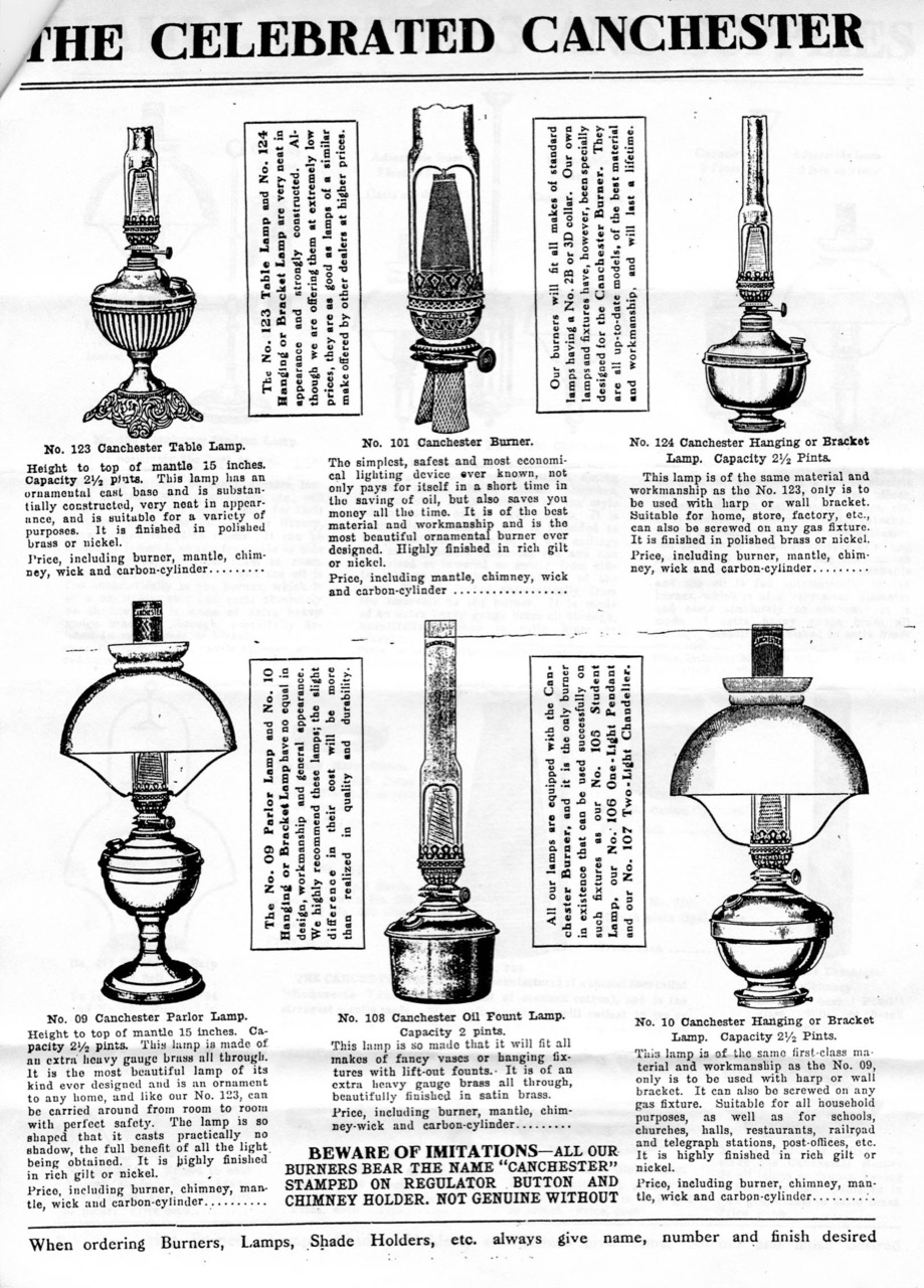 In 1908 the Canchester Incandescent Kerosene Light and Heat company changed its name to the Canchester Light Company. The patent for the Canchester burner was