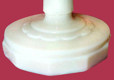 and there was often a lot of variation among the molds. It is believed that the first mold used in to make the Tall Lincoln Drape lamp was the scallop foot mold. Subsequent molds did not carry the scallop pattern. The rarity of the scallop foot makes it sought after by collectors.