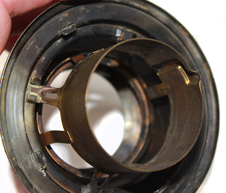 The brass cylinder at the top of the inner wick tube acts as a stop to correctly place the flame spreader within the inner wick tube.