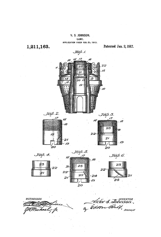 Note: The burner patent was applied for in 1906 and the company went out of business in 1912 leaving a large supply of new in the box burners and chimneys.
