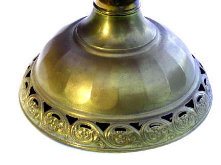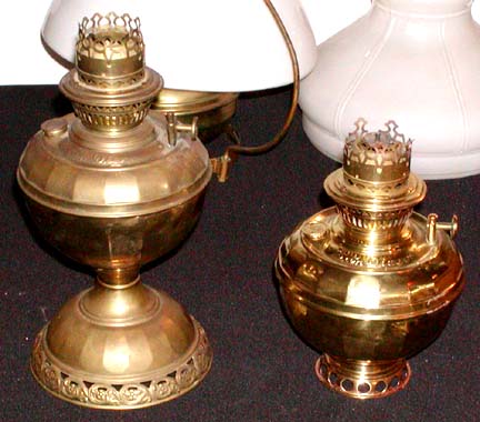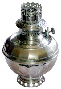 a font lamp in both brass and nickel plated finishes The lamp was available as a standard diameter oil pot lamp in brass finish.. Bradley& Hubbard